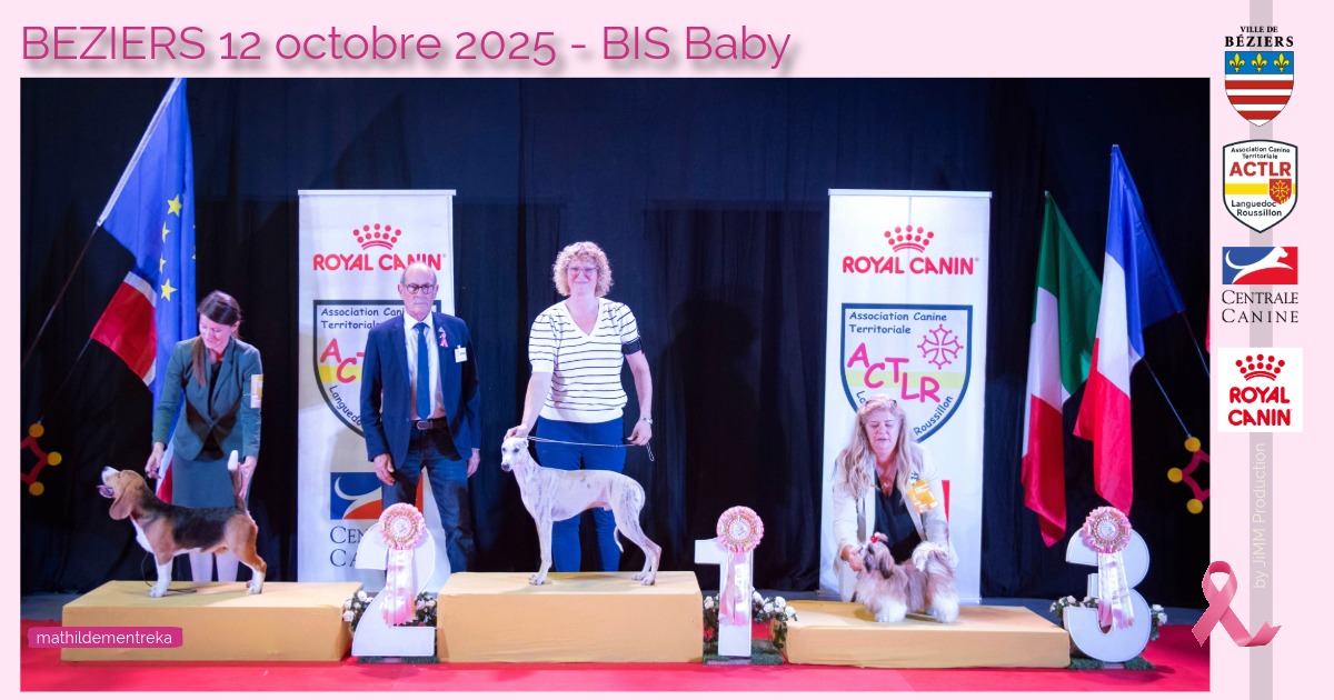 1er Très Prometteur, Meilleur Baby, puis Best in Show Baby (classe baby – juge Mr Coppel) à l’exposition internationale de Béziers le 12/10/2025 !